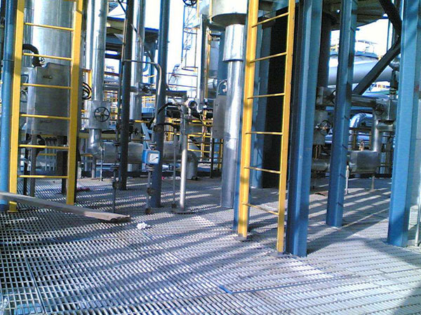 化工廠用鋼格板 鋼格板是用承載扁鋼和橫桿按照一定的間距進行正交組合,通過焊接或壓鎖加以固定的開敞式鋼構件;橫桿一般采用經過扭絞的方鋼、也可采用圓鋼或扁鋼,材質分為碳鋼和不銹鋼鋼格板主要用來做鋼結構平臺板、溝蓋板、鋼梯的踏步板、建筑物吊頂等。 簡介 ···